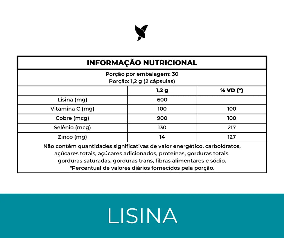 L-Lisina Composta - Lisina, Vitamina C, Zinco, Selênio e Cobre